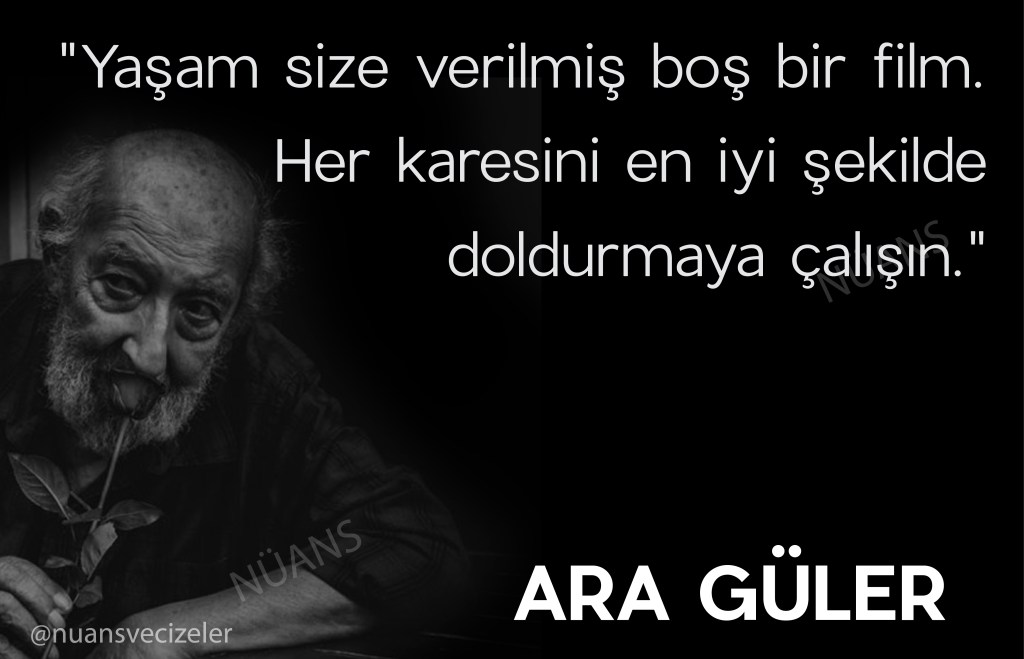 Ara Güler Aralık 22, 2018 By Nuans Vecizeler “Yaşam size verilmiş boş bir film. Her Karesini en iyi şekilde doldurmaya çalışın.” Ara Güler Bunu paylaş: X'te paylaşmak için tıklayın (Yeni pencerede açılır) X Facebook'ta paylaşmak için tıklayın (Yeni pencerede açılır) Facebook Beğen Yükleniyor... İlgili