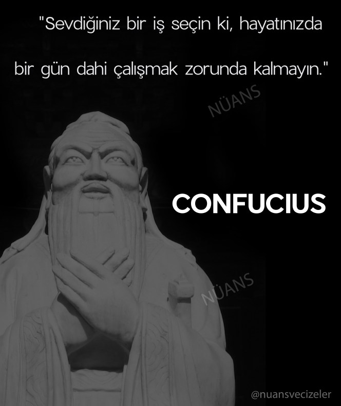 Confucius Aralık 23, 2018 By Nuans Vecizeler “Sevdiğiniz bir iş seçin ki, hayatınızda bir gün dahi çalışmak zorunda kalmayın.”Confucius Bunu paylaş: X'te paylaşmak için tıklayın (Yeni pencerede açılır) X Facebook'ta paylaşmak için tıklayın (Yeni pencerede açılır) Facebook Beğen Yükleniyor... İlgili