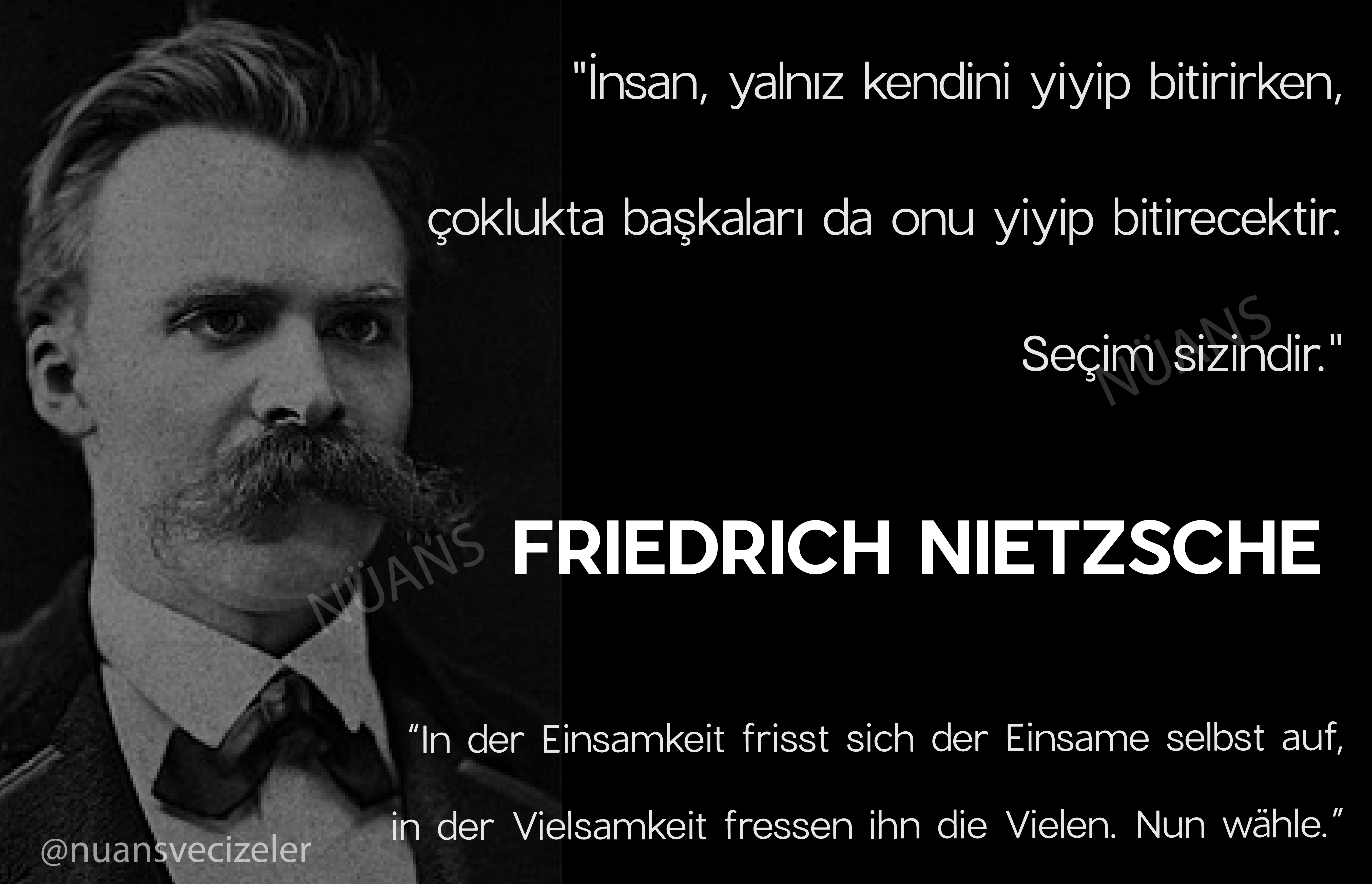 “In der Einsamkeit frisst sich der Einsame selbst auf, in der Vielsamkeit fressen ihn die Vielen. Nun wähle.”