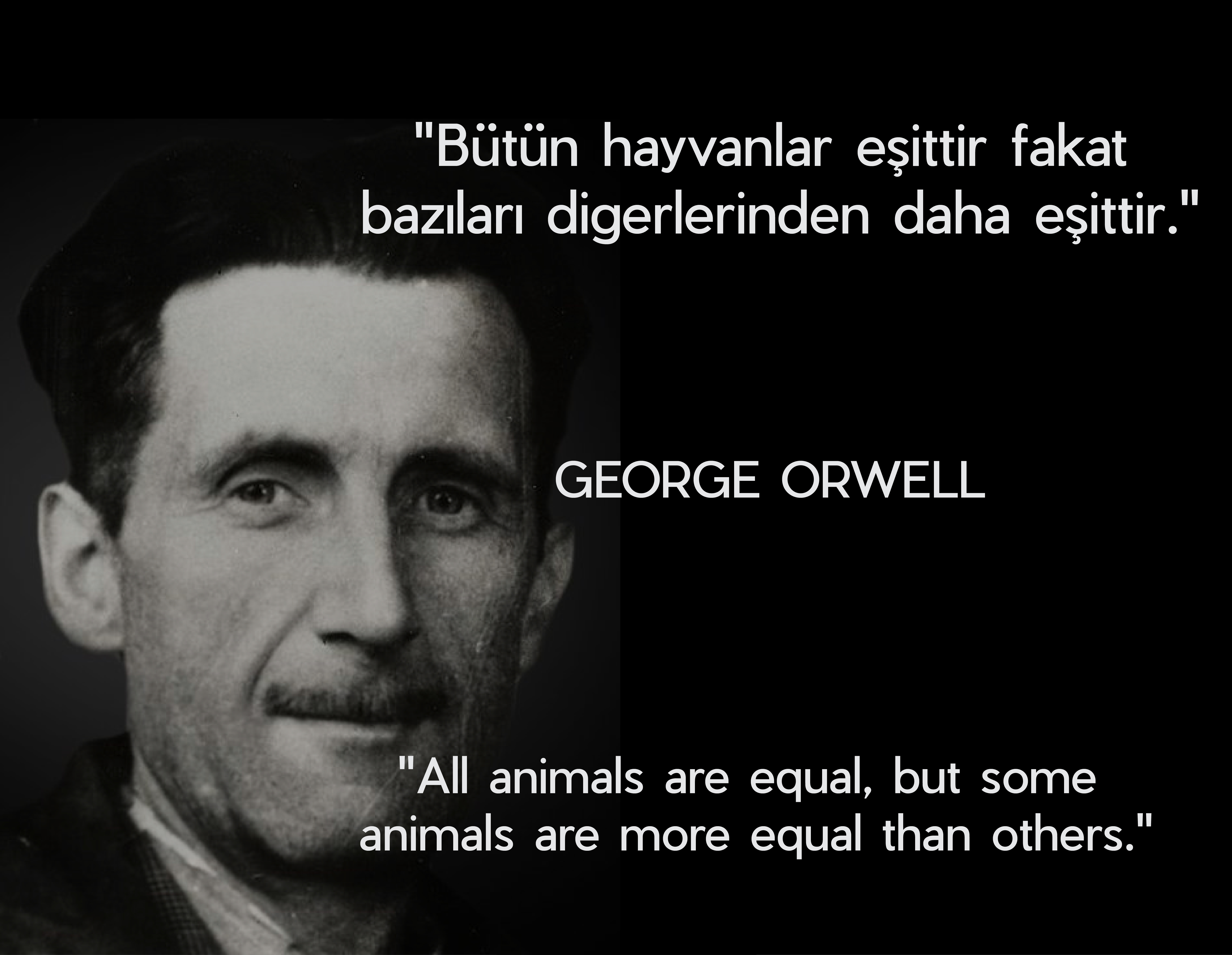 George Orwell Aralık 24, 2018 By Nuans Vecizeler “Bütün hayvanlar eşittir fakat bazıları diğerlerinden daha eşittir.” George Orwell Bunu paylaş: X'te paylaşmak için tıklayın (Yeni pencerede açılır) X Facebook'ta paylaşmak için tıklayın (Yeni pencerede açılır) Facebook Beğen Yükleniyor... İlgili