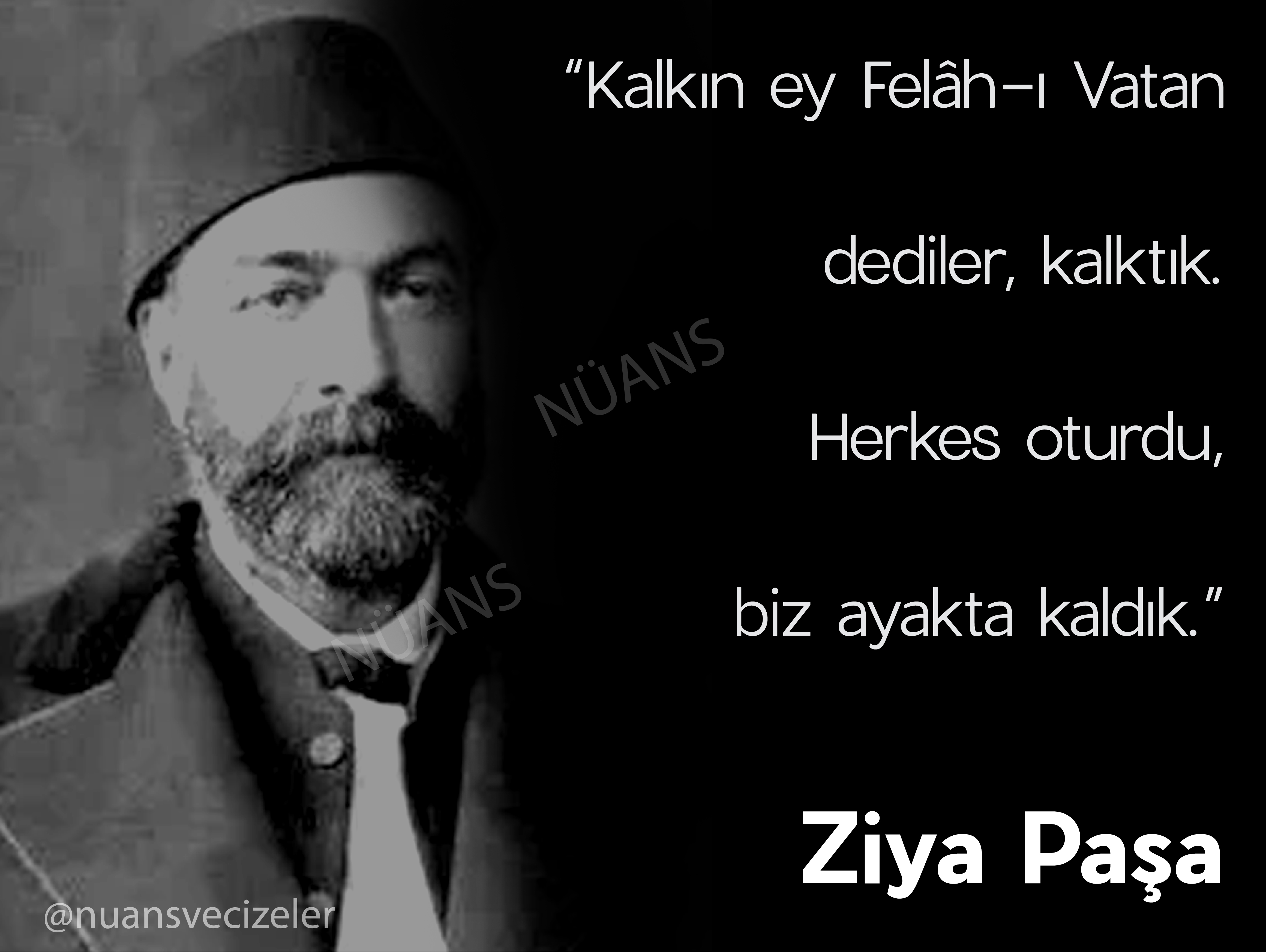 Ziya Paşa Aralık 24, 2018 By Nuans Vecizeler Kalkın ey Felâh-ı Vatan dediler, kalktıkHerkes oturdu, biz ayakta kaldık. Ziya Paşa Bunu paylaş: X'te paylaşmak için tıklayın (Yeni pencerede açılır) X Facebook'ta paylaşmak için tıklayın (Yeni pencerede açılır) Facebook Beğen Yükleniyor... İlgili