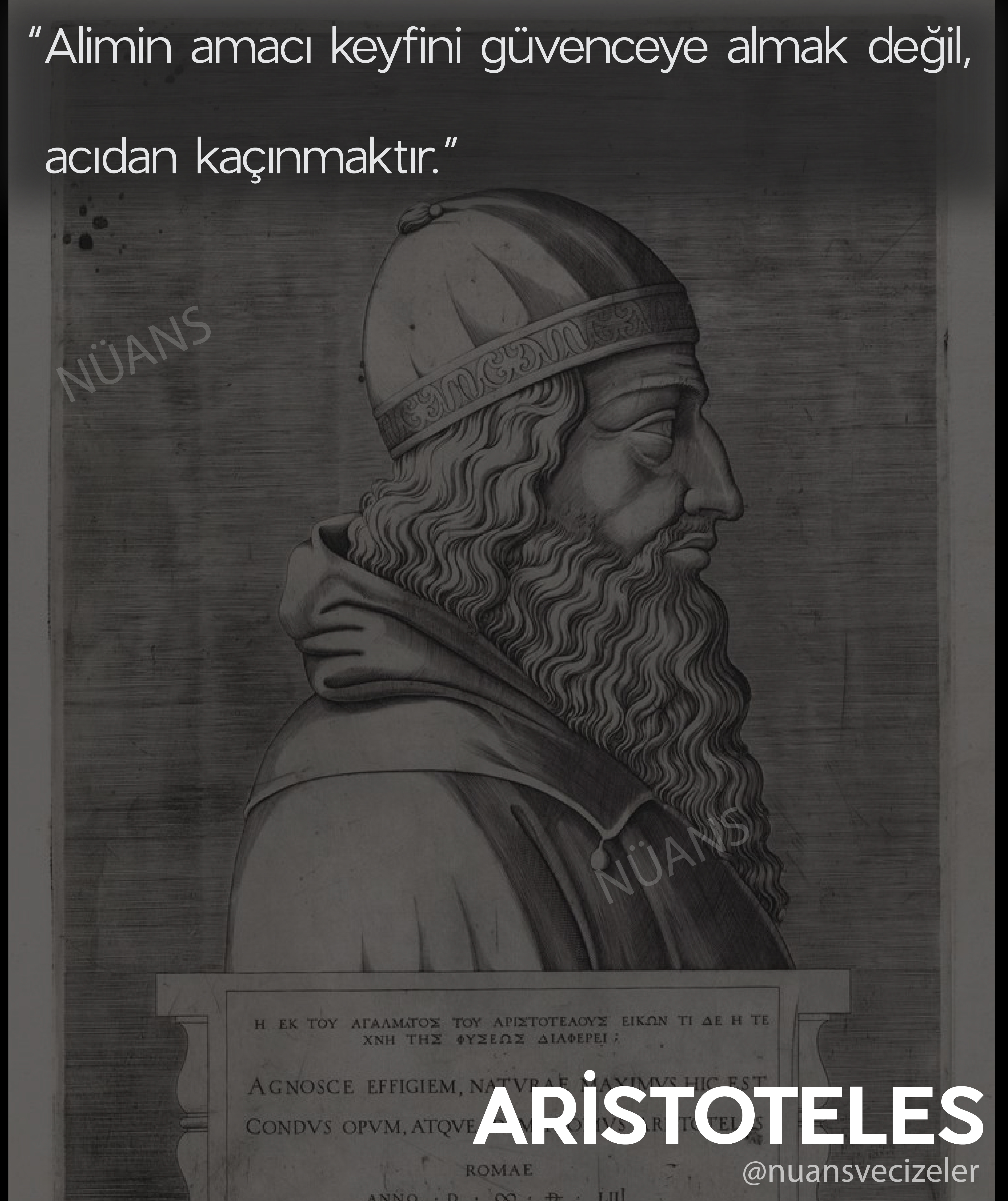 Aristoteles Aralık 26, 2018 By Nuans Vecizeler “Alimin amacı keyfini güvenceye almak değil, acıdan kaçınmaktır.” Aristoteles Bunu paylaş: X'te paylaşmak için tıklayın (Yeni pencerede açılır) X Facebook'ta paylaşmak için tıklayın (Yeni pencerede açılır) Facebook Beğen Yükleniyor... İlgili
