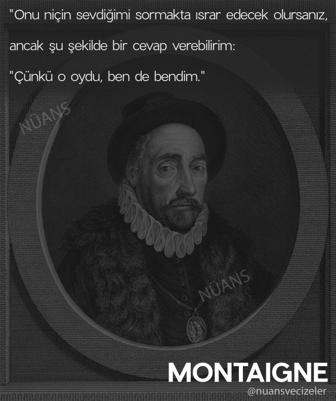 “Onu niçin sevdiğimi sormakta ısrar edecek olursanız, ancak şu şekilde bir cevap verebilirim: “Çünkü o oydu, ben de bendim.”